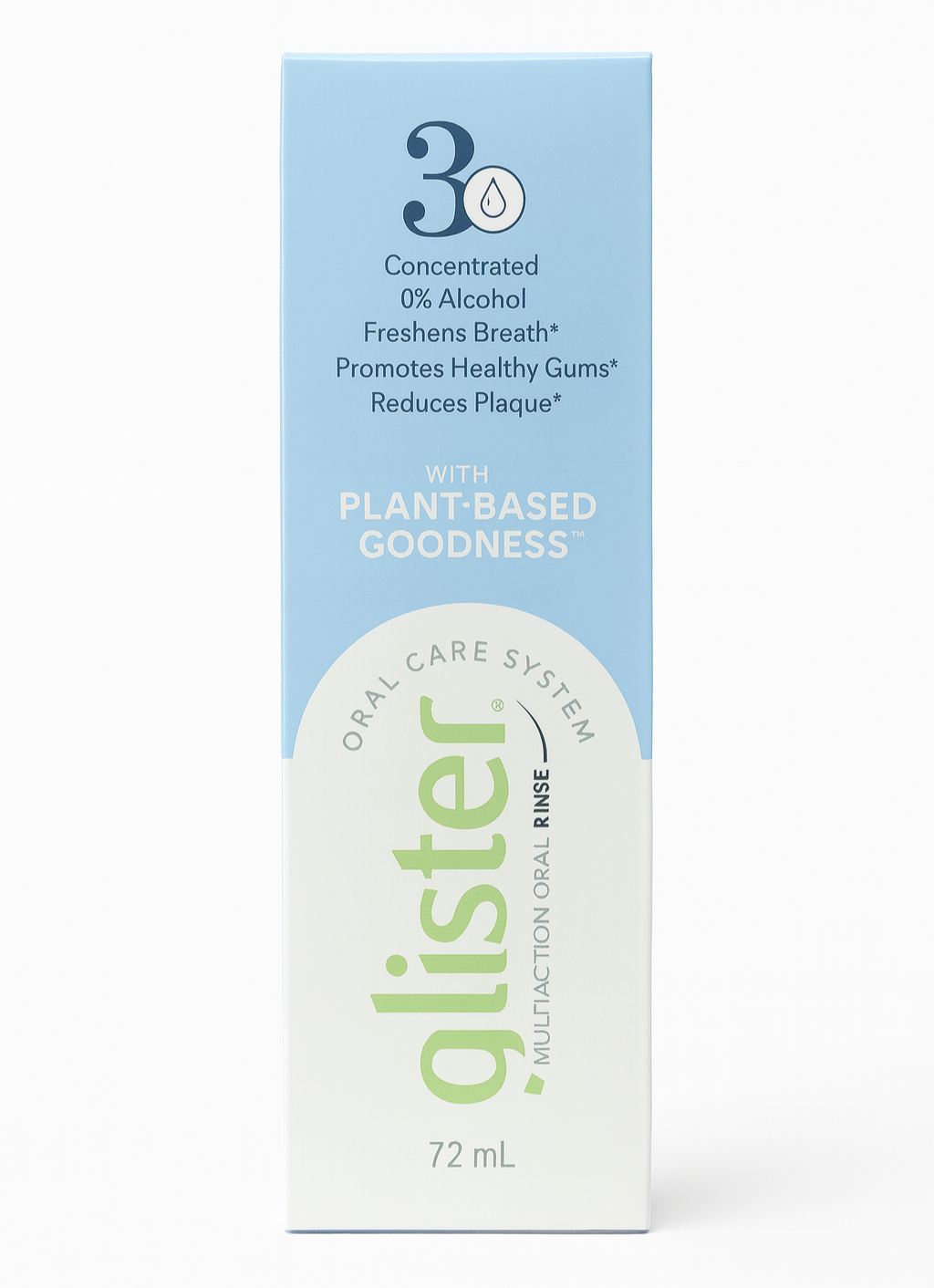 Завдяки легкому м’ятному смаку Glister дарує відчуття чистоти, не подразнюючи чутливі ділянки. Маленький флакон зручно брати із собою в дорогу або використовувати вдома — всього кілька крапель достатньо для одного ополіскування.