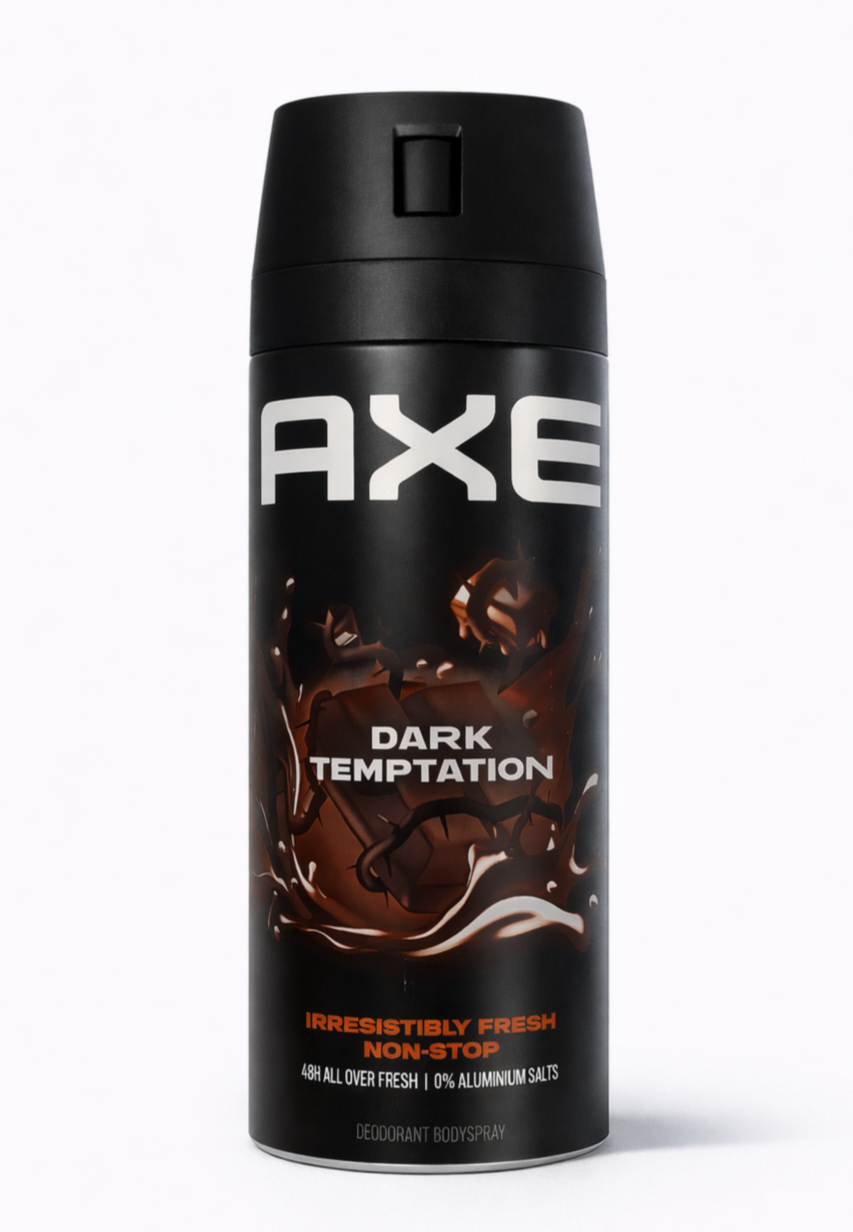 Axe Dark Temptation дезодорант-спрей 150 мл — чоловічий антиперспірант-спрей з характерним, привабливим ароматом, який відкривається теплими нотами темного какао, пряних і деревних акцентів. Цей аромат створює відчуття впевненості й залишає після себе приємний, стійкий шлейф.
