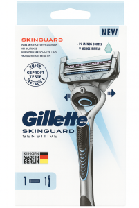 Gillette SkinGuard Sensitive — це революційна бритва, спеціально розроблена для чоловіків, схильних до подразнень, почервоніння або вростання волосся. Її унікальна система SkinGuard розташована між двома лезами та зменшує тиск на шкіру, забезпечуючи м’яке та безпечне гоління.