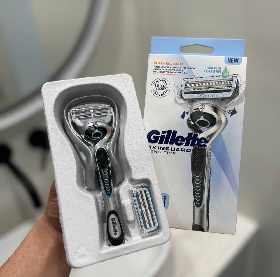 Gillette SkinGuard Sensitive (2+1) — це сучасна система для гоління, розроблена спеціально для чоловіків із чутливою або проблемною шкірою. Інноваційна технологія SkinGuard, розташована між двома лезами, допомагає зменшити контакт лез із шкірою, запобігаючи подразненням, почервонінню та вростанню волосків.