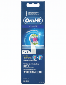 Oral-B 3D White — це комплект із двох змінних насадок, спеціально розроблених для відновлення природної білизни зубів та покращення їхнього зовнішнього вигляду. У центрі кожної насадки розміщена еластична полірувальна чашечка, яка працює подібно до стоматологічних полірувальних інструментів: вона м’яко полірує емаль, видаляючи поверхневі плями від кави, чаю, напоїв та інших пігментів.
