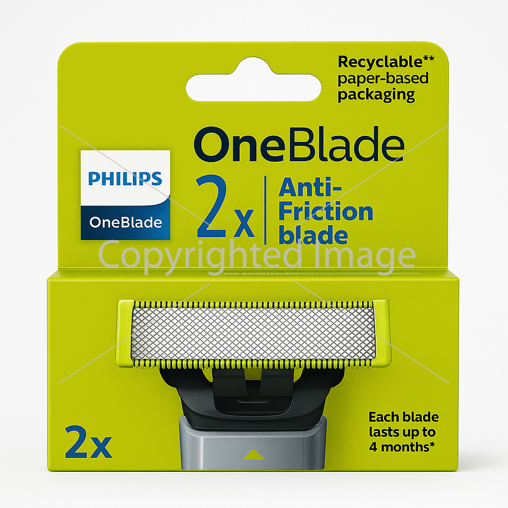 Комплект містить 2 змінні леза, кожне з яких розраховане на приблизно 4 місяці використання (залежно від інтенсивності). Леза сумісні з усіма моделями Philips OneBlade та OneBlade Pro.