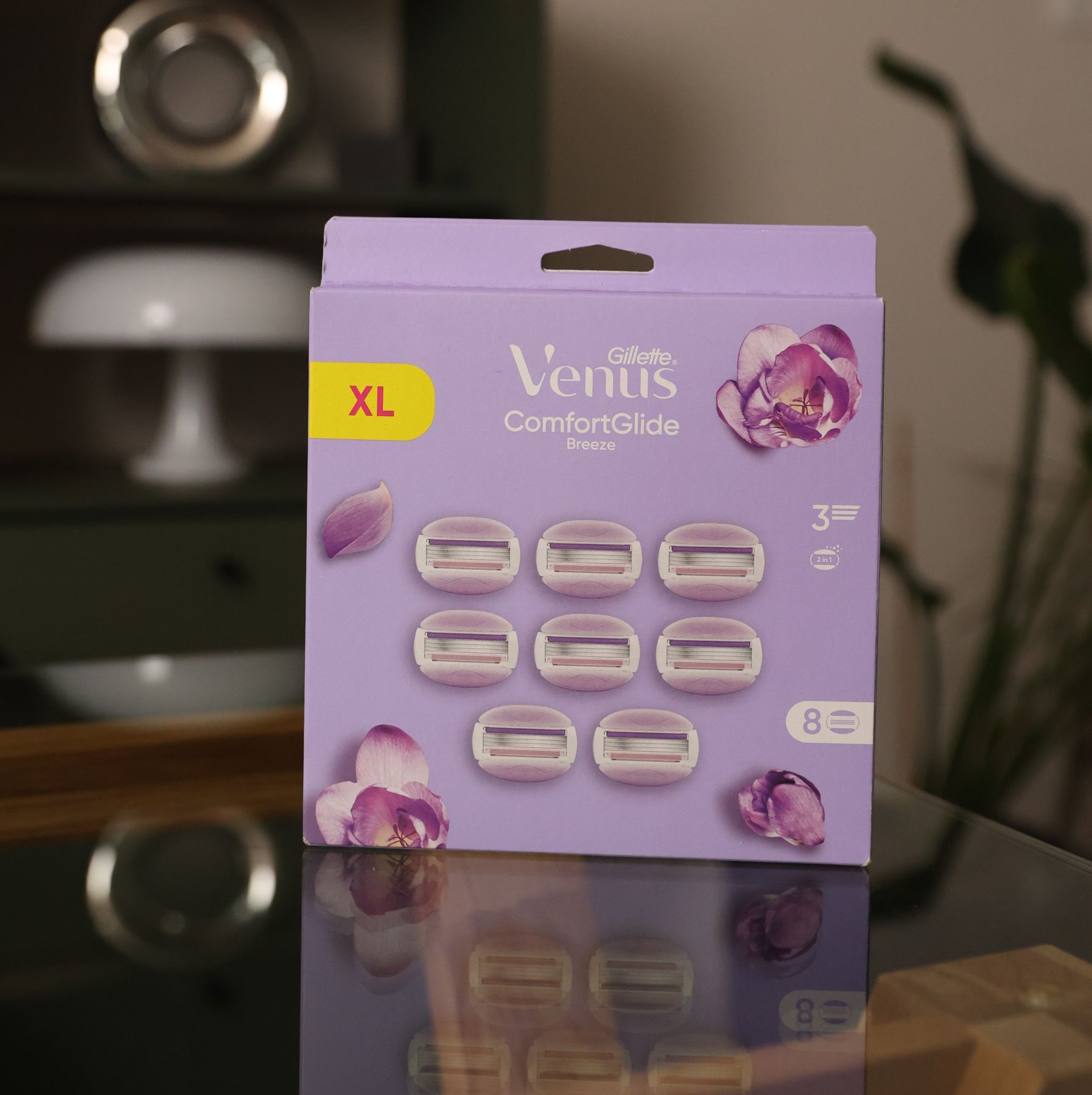 Venus 3 Breeze (8 шт) Планшет — комплект із восьми змінних картриджів для жіночих бритв Venus 3 Breeze, створений для плавного, комфортного та делікатного гоління. Кожен картридж має 3 гострі леза, що рівномірно обробляють волоски й забезпечують гладкий результат із мінімальними подразненнями, навіть на чутливій шкірі.