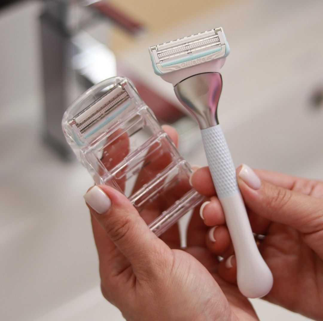 Плаваюча головка адаптується до природних контурів тіла, що дозволяє ефективно працювати у важкодоступних місцях. Ручка має антиковзке захоплення, тож станок не вислизає навіть у душі.