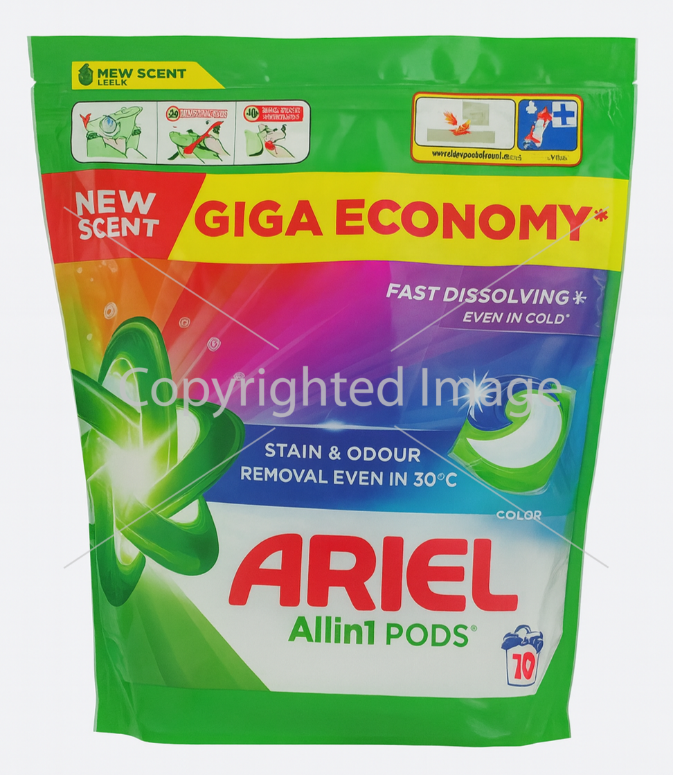 Ariel Color (70 шт) — це високоефективні пральні капсули, створені для глибокого очищення та дбайливого догляду за кольоровими речами. Трикамерна формула активних компонентів працює комплексно: видаляє стійкі забруднення, захищає волокна та підтримує насиченість кольорів навіть після численних циклів прання.