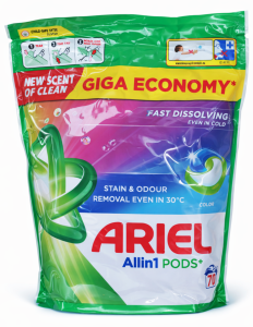 Завдяки точному дозуванню кожна капсула забезпечує оптимальну концентрацію засобу, що гарантує рівномірне очищення без розводів і залишків. Ariel Color швидко розчиняється у воді будь-якої температури, зберігаючи текстуру тканин і запобігаючи їхньому вицвітанню.