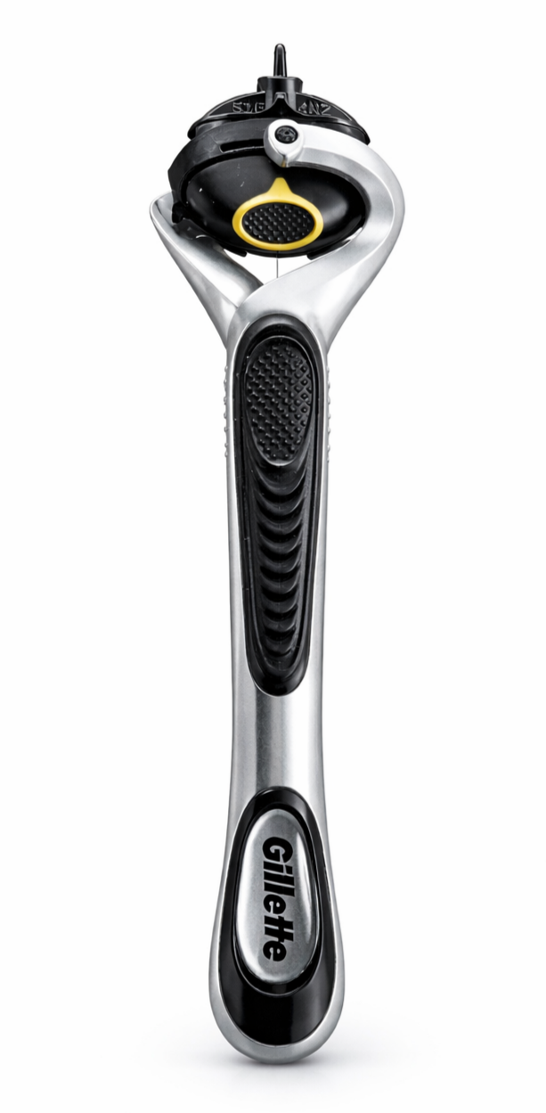 Ергономічна текстура поверхні забезпечує комфорт навіть у вологих умовах, дозволяючи впевнено працювати по контуру обличчя та шиї. Сумісна з картриджами серії Gillette ProShield, які мають зволожуючі смужки до й після лез — для м’якшого ковзання і мінімізації подразнень.