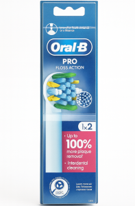 Oral-B Pro Floss — це комплект із двох високоефективних насадок, розроблених для поглибленого очищення тих зон, де зубна щітка зазвичай не справляється. Особливістю насадок є MicroPulse-щетинки — тонкі, пружні й рухомі волокна, які проникають у міжзубні проміжки та вибивають наліт із важкодоступних ділянок.
