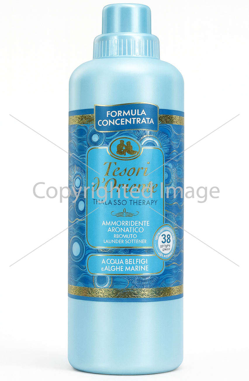Кондиціонер для прання Tesori d'Oriente Талассо Терапія 760 мл натхненний доглядовими морськими ритуалами. Його формула глибоко пом’якшує тканини, роблячи їх ніжними на дотик та більш слухняними. Одяг після прання легше прасується та довше зберігає свою форму.