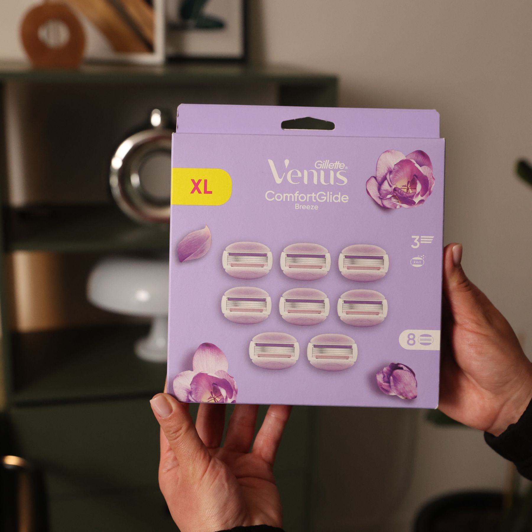 Venus 3 Breeze (8 шт) Планшет — комплект із восьми змінних картриджів для жіночих бритв Venus 3 Breeze, створений для плавного, комфортного та делікатного гоління. Кожен картридж має 3 гострі леза, що рівномірно обробляють волоски й забезпечують гладкий результат із мінімальними подразненнями, навіть на чутливій шкірі.