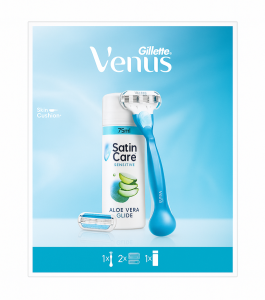 Venus 3 — зручний набір для щоденного гоління, у якому зібрано все необхідне для доглянутої та гладкої шкіри. До комплекту входить гель для гоління з екстрактом алое, що забезпечує м’яке ковзання, делікатно пом’якшує волоски та зменшує ризик подразнень. Легка формула гелю підходить навіть для чутливої шкіри, залишаючи її зволоженою та комфортною після процедури.
